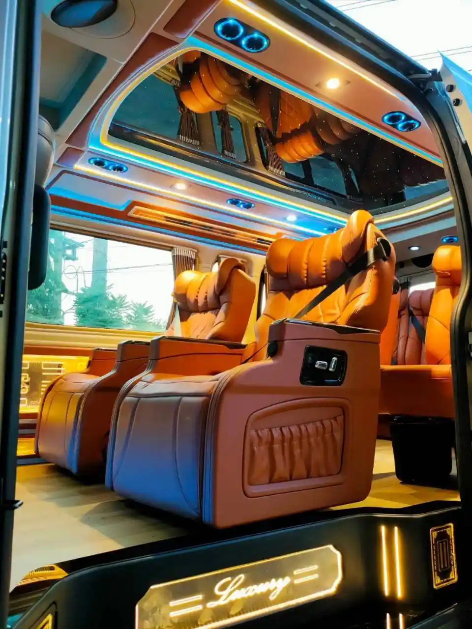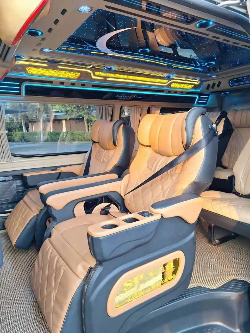เบาะ VIP พร้อมเข็มขัดนิรภัยภายในรถตู้เช่า